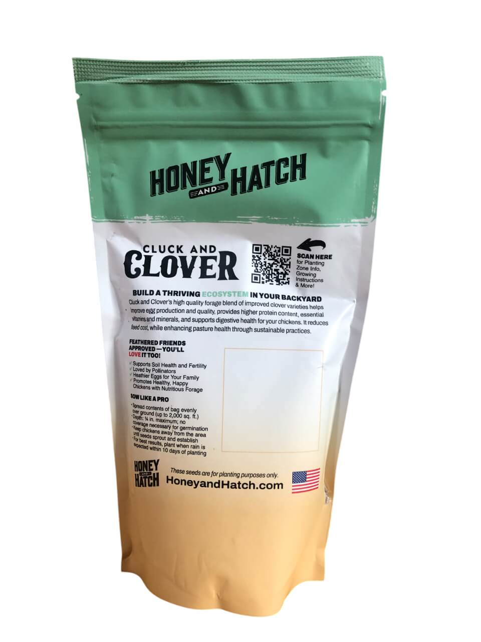 Honey and Hatch premium clover seed is carefully curated and hand-mixed in small batches in the USA by our team that takes pride in making quality blends of seed. We use only select, premium-quality non-GMO seed. Our seed blends are ideally suited for individuals, families and businesses that want to grow produce and livestock on their property in a sustainable manner. Our seed products create healthy spaces for bees, chickens and gardens to flourish.